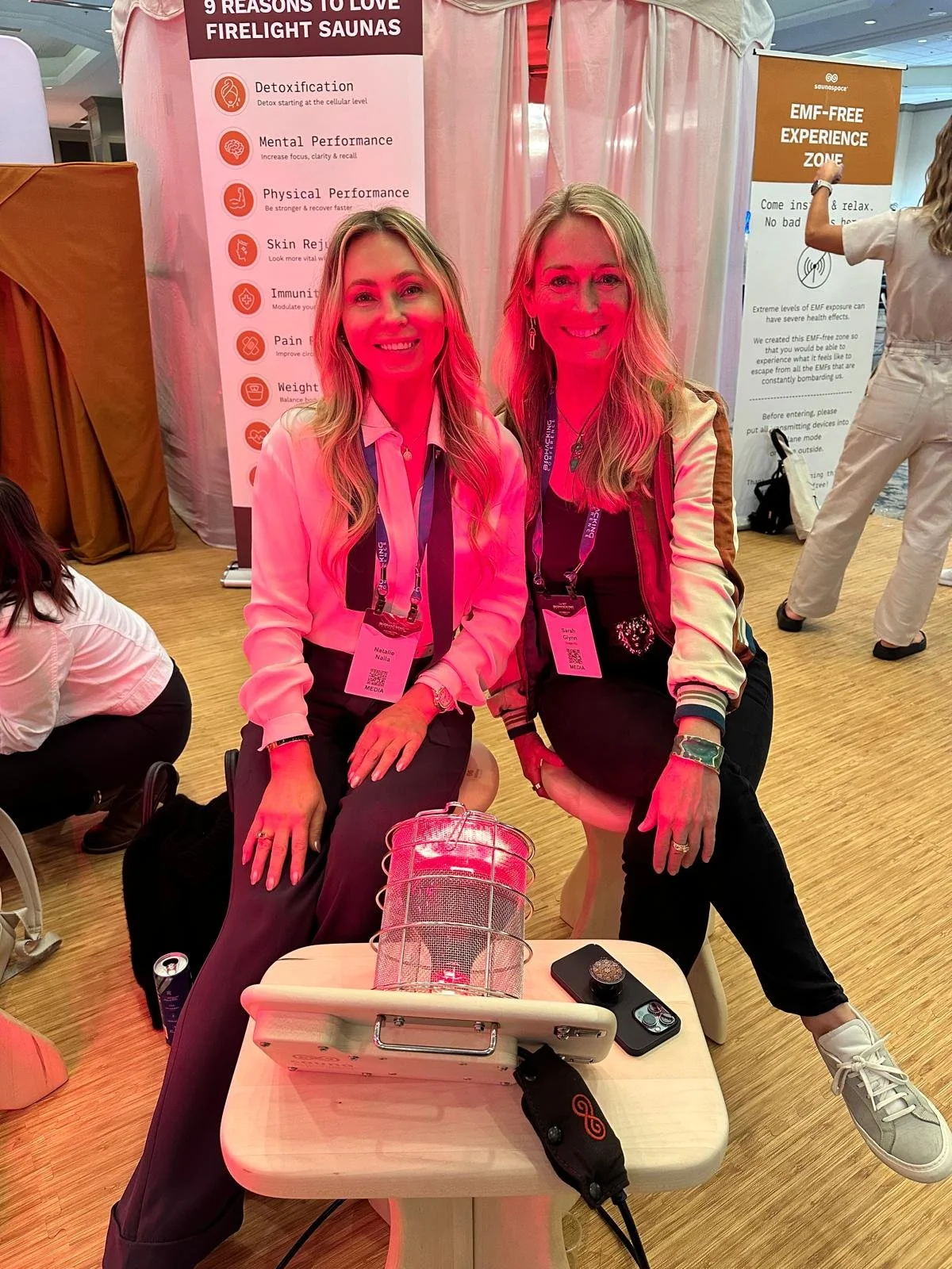 Stepping into the event felt like walking into a biohacker's dream! The Hilton’s ballroom was transformed into a biohacking haven, with booths from over 100 brands showcasing cutting-edge products and technologies designed to optimize health and longevity. The vibrant colors, sleek designs, and innovative setups of each booth were captivating. It felt like stepping into the future.