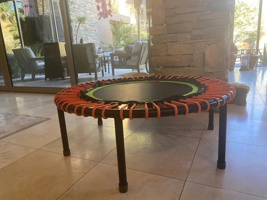 Then, I start with a revitalizing 10-minute stretching session to get my body moving. In those 10 mins, I spend about 5 mins jumping on my Bellicon bouncer.