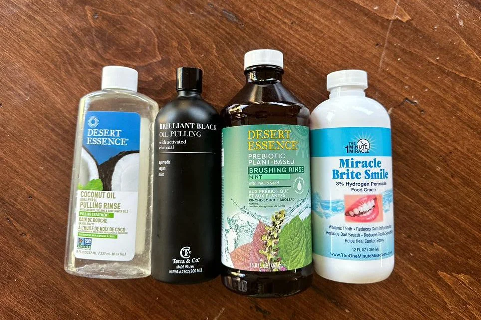 Instead, I turned to natural alternatives: oxygenated toothpaste, charcoal toothpaste, and even baking soda. I ensure that everything I use is natural and fluoride-free. In the mornings, I skip mouthwash and do a 5-minute coconut oil pulling rinse, a technique that originates from Ayurvedic medicine. The brand I use, Desert Essence, can be bought at Whole Foods or directly from desertessence.com. This simple routine gives my mouth a clean, fresh feeling, often removing the need for morning brushing.